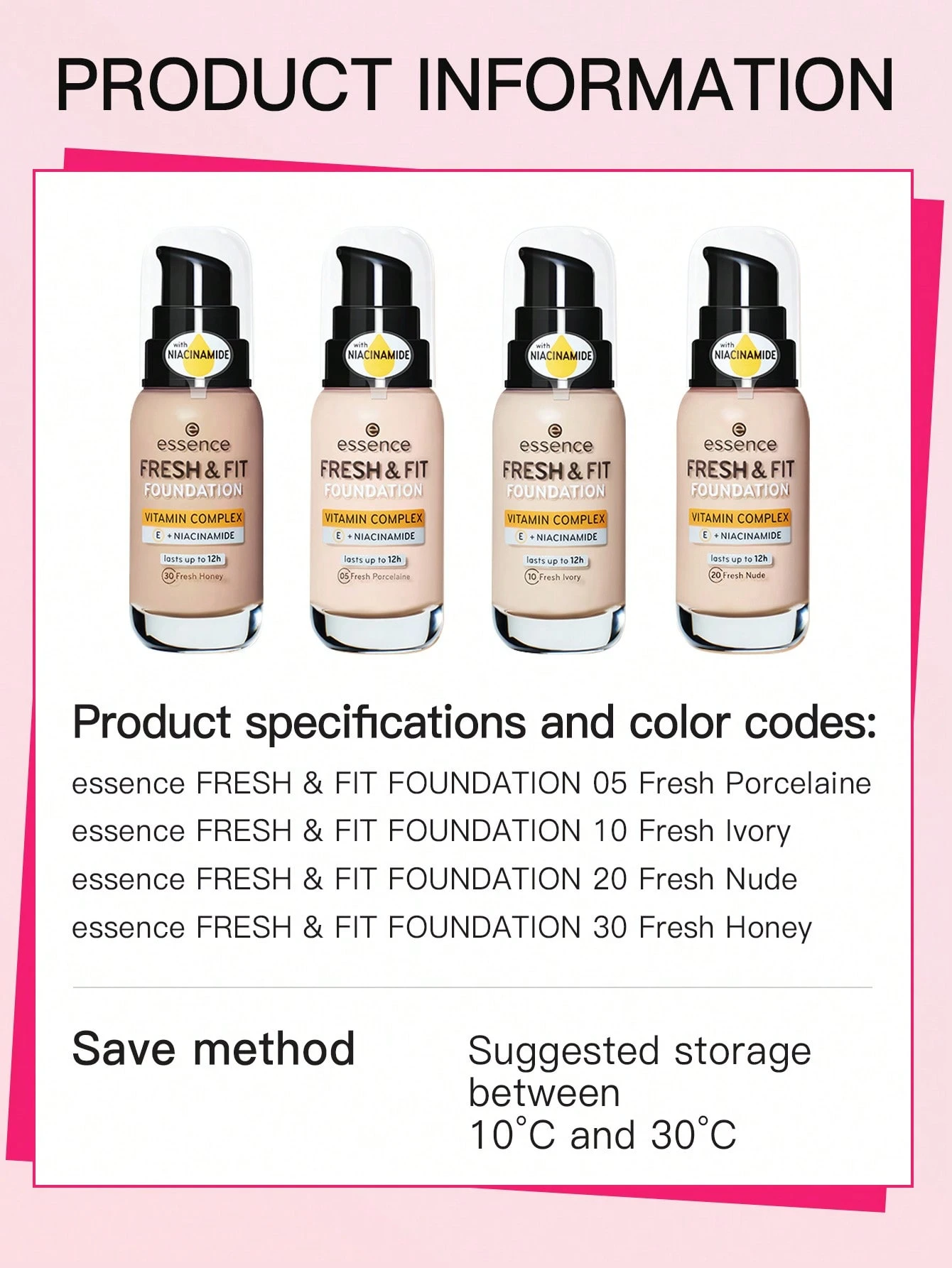 05 Fresh Porcelaine, 10 Fresh Ivory, 20 Fresh Nude, 30 Fresh Honey